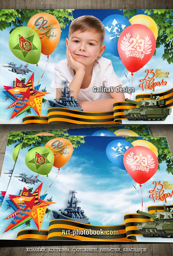 Коллаж-открытка 23 Февраля, Воздушные шары