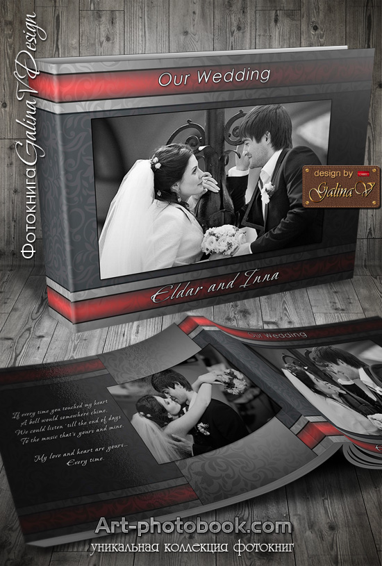 Стильная фотокнига для молодоженов Свадьба в черно-красном
