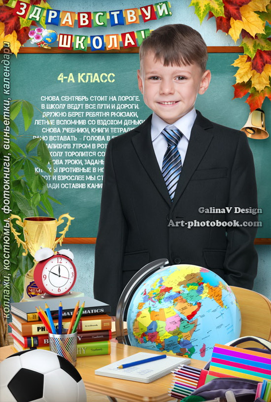 PSD, многослойный шаблон для школьников к 1 сентября / 30,5 х 20,3 см / 300 dpi / RGB