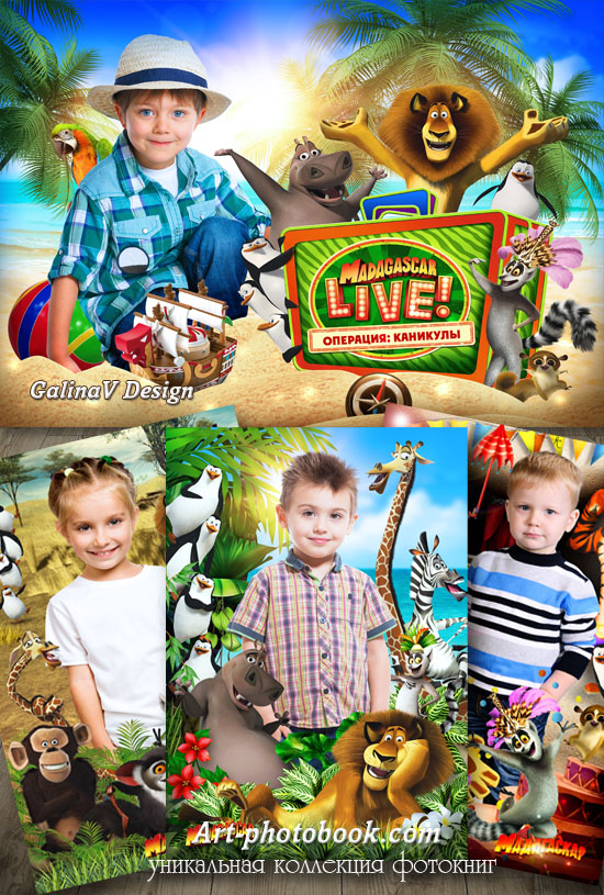 Детский праздничный коллаж - Новогодний Мадагаскар