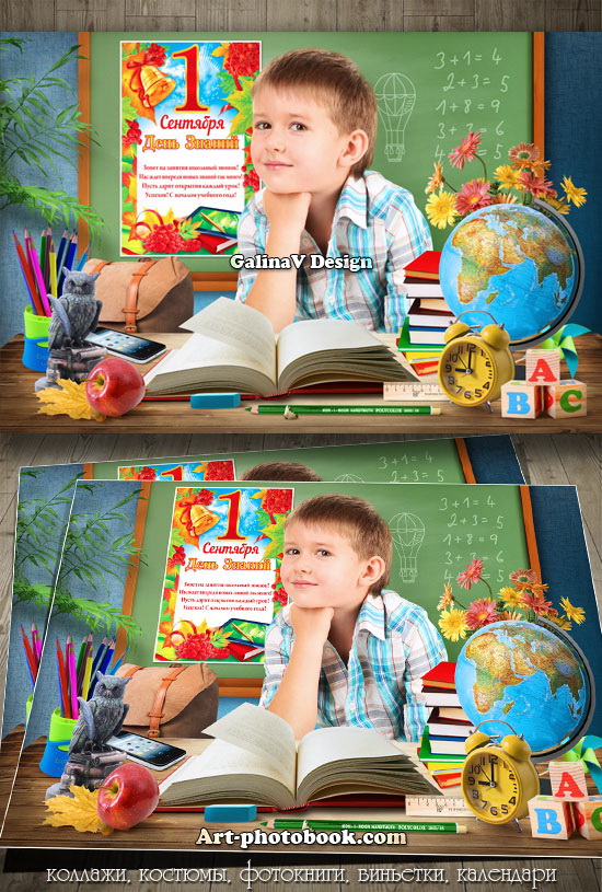 PSD, многослойный шаблон для начальной школы к 1 Сентября / 30,5 х 20,3 см / 300 dpi / RGB