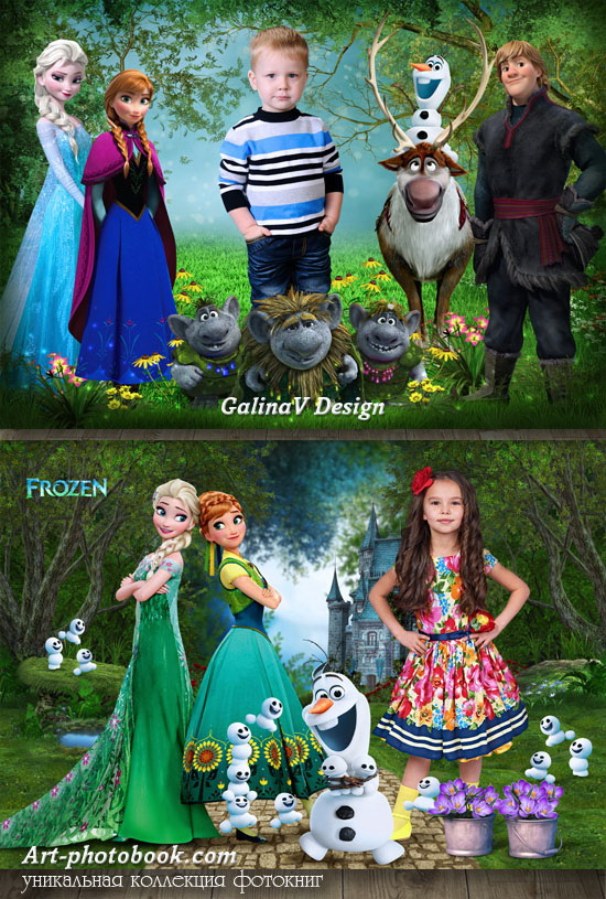 PSD, многослойный шаблон с персонажами мультфильма Холодное сердце / 30,5 х 20,3 см / 300 dpi / RGB