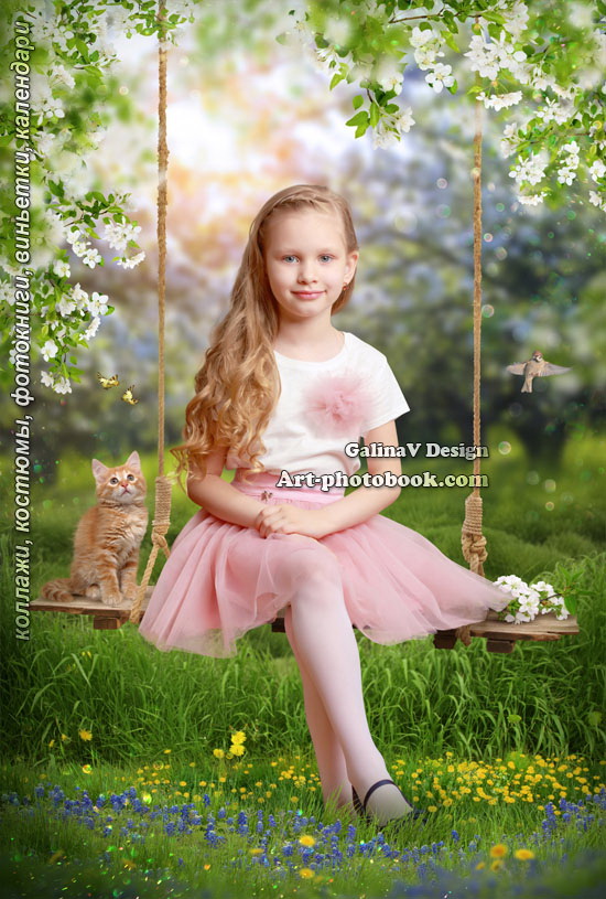 Сказочный коллаж для оформления фото девочек и женщин - Качели у замка