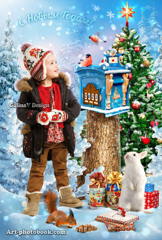 PSD, многослойный новогодний шаблон для детского сада и начальной школы / 20,3 х 30,5 см / 300 dpi / RGB