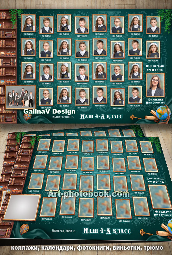 виньетка на 28 учеников, портрет учителя; фотографий в макете нет