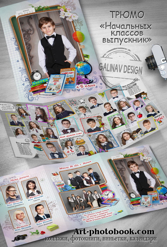 4 PSD, 2 обложки, 1 виньетка, 1 разворот для фото класса / 45 x 30 см / 300 dpi / RGB