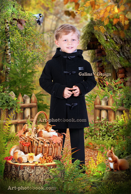 Осенний лес (6) корзина с грибами не является элементом коллажа -
