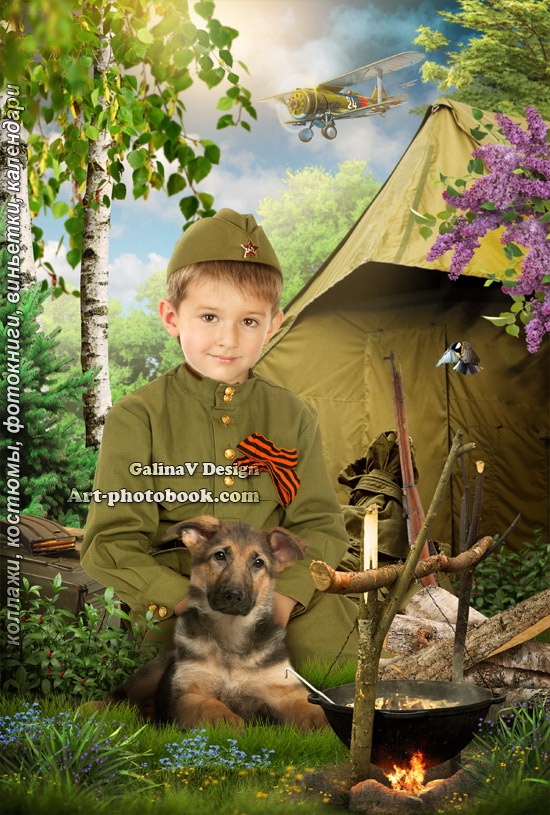 Детский шаблон для фотомонтажа, коллаж + костюм - Солдат
