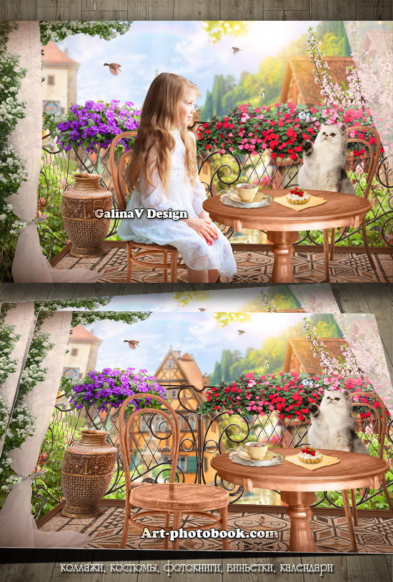 шляпка на отдельном слоеДетский коллаж для оформления фото - Чаепитие в саду